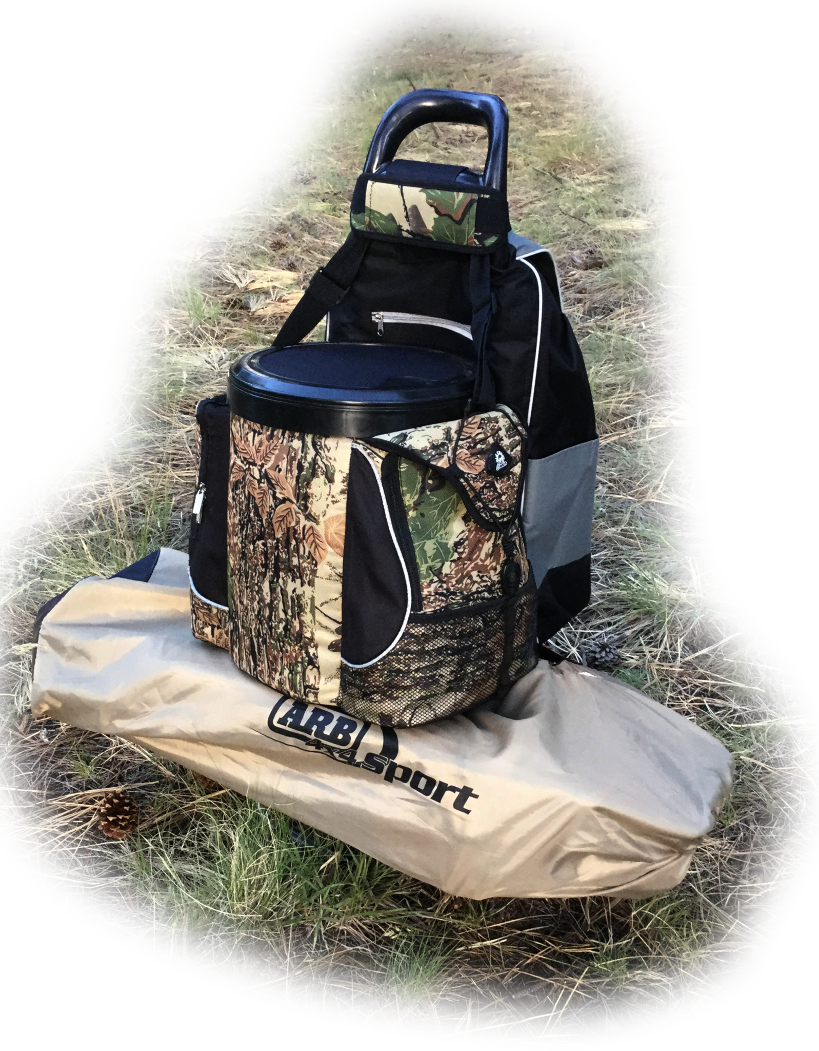 The Coolest Trolley holds all your gear with its lightweight (4lbs.) yet durable design holding up to 100lbs. It folds flat and the wheels remove. It's designed to push in front of you or pull from behind. The gear bag is durable 600 denier polyester and the wheels are puncture proof.